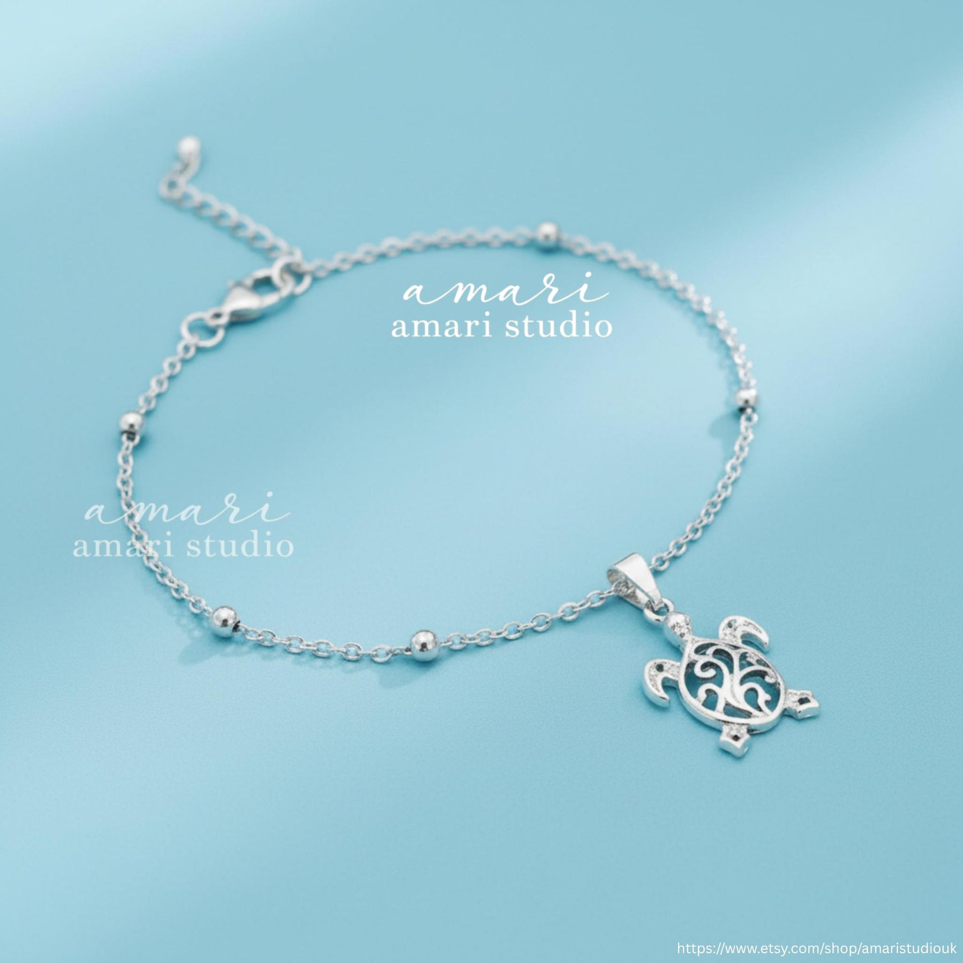 Silver Turtle Chain Anklet – Tortoise Beach Ocean Jewellery for Summer Vacation